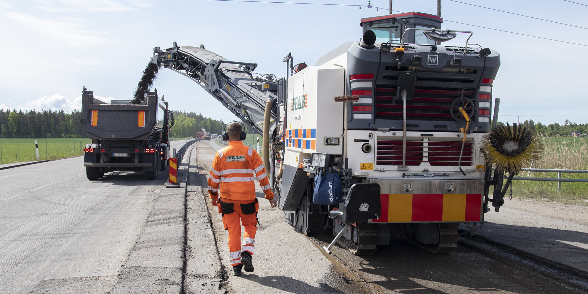 Tandemkörning med två fräsar på en yta om 19.000 kvadratmeter och frästdjupet var 90 mm djup. Två supersugar användes för att ta hand om eventuella asfaltrester. 17 semitrailers fraktade massorna till tipp cirka 2,5 mil. Cirka 4.000 ton asfalt frästes bort på 11,5 timmar. Asfalten lades därefter ut i två lager med två läggarlag med start två tim...