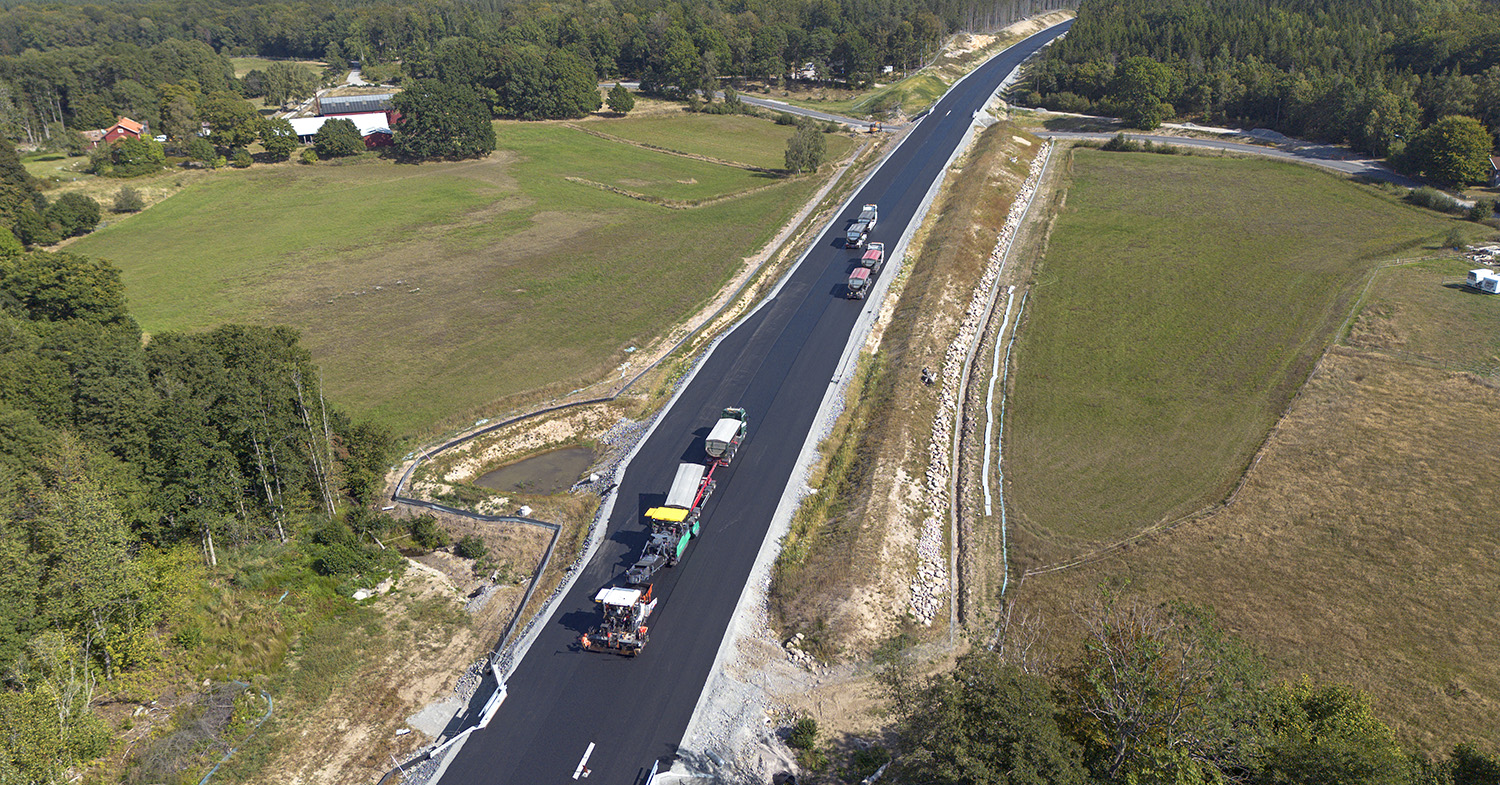 - Det är ett komplext arbete att lägga beläggning på en motortrafikled, men vi har ett bra samarbete inom Peab-koncernen samt med Trafikverket som gör att arbetet går smidigt. På högtrafikerade vägar som denna används en mer högkvalitativ sten i asfalten och det finns stora krav på jämnheten som vi kontinuerligt mäter under arbetets gång. Beläggningen ska tåla belastningen från tät trafik under en lång period, säger Peter Löfgren, arbetschef på Peab Asfalt.