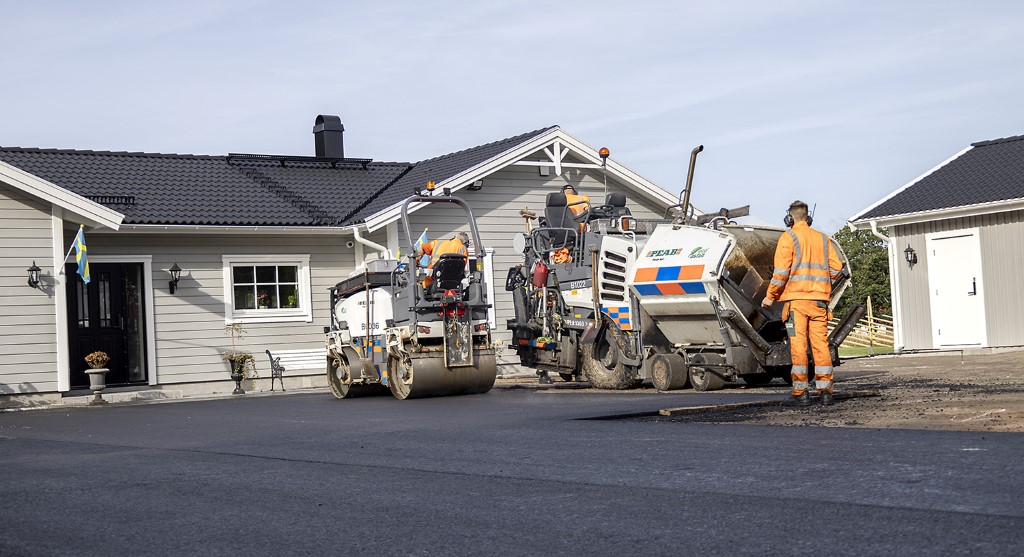 Peab Asfalt har lång erfarenhet av att utföra beläggningsarbeten både för privatpersoner och företag. Ett skickligt asfaltslag om fem personer färdigställde den 400 kvadratmeter stora ytan på några få timmar. Till sin hjälp hade de asfaltsläggare, vält och padda vilket gjorde att arbetet gick snabbt och smidigt.